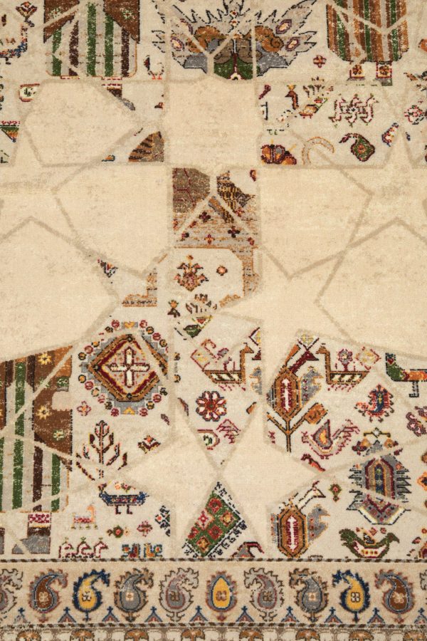 فرش ماشینی طرح شمسه از الیاف پلی اوژن تشکیل شده است. تنوع رنگهای استفاده شده در این فرش بیش از ده رنگ بسیار زیبا است که هارمونی شگفت انگیزی را ایجاد کرده است. هنرنمایی سنتی زیبا و رنگارنگ فرش طرح باغ ارم، آن را به فرشی بیرقیب برای علاقهمندان به فرهنگ و هنر ایرانی تبدیل کردهاست. این فرش ماشینی بدلیل الیاف استفاده شده در آن بسیار مقاوم و مستحکم است و در اثر پا خوردگی کیفیت و رنگ و لعاب اولیه خود را از دست نمیدهد. یک بار خرید کنید و چندین سال از انتخاب خود لذت ببرید.
