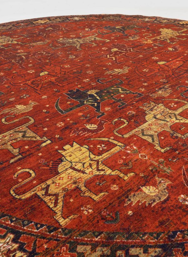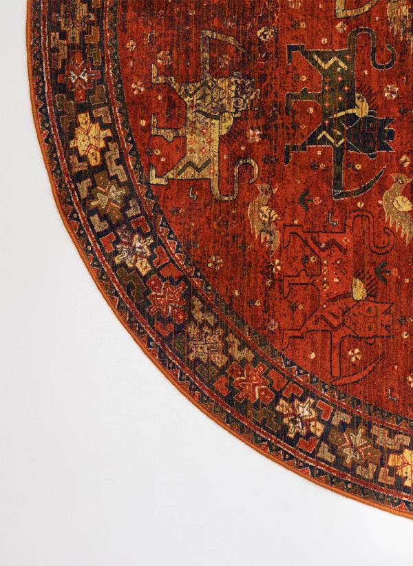 نقد و بررسی قالیچه ی گرد طرح شیر و خورشید کد 600104